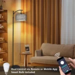 Dual Control Via Remote or Foot Switch: This floor lamps for living room adopts a combination of remote control and foot switch, assuring convenience for daily life. You can easily turn the boho floor lamp with remote on/off, adjust brightness, change colors or set timing modes by buttons. Or you can connect this standing lamp to “Smart Home Light” App, and control it with your phone.