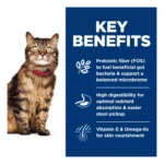 This dry cat food is specially crafted for adult cats with sensitive stomachs and delicate skin. Its highly digestible formula helps improve nutrient absorption while being gentle on the digestive system. Enriched with Vitamin E and Omega-6 fatty acids, it nourishes the skin and promotes a soft, shiny coat. Added prebiotic fiber (FOS) supports healthy gut bacteria and overall digestive balance, helping your cat look and feel their best every day.