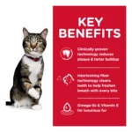 Good dental health is essential for your cat’s overall well-being. This dry cat food is specially formulated to support oral care by helping reduce plaque and tartar buildup. Its clinically proven fiber technology gently scrubs teeth while your cat chews, helping to clean teeth and freshen breath naturally. Made with high-quality chicken and brown rice, it provides balanced nutrition along with omega-6 fatty acids and vitamin E to promote healthy skin and a shiny coat. This wholesome recipe supports daily dental hygiene and overall vitality for adult cats.