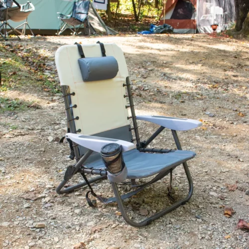 4-Position Backpack Camping Chair – Adjustable Recline, Lace-Up Suspension & Built-In Carry Straps