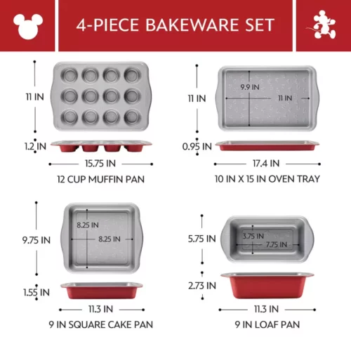 Bake with Mickey Mouse 4-Piece Nonstick Bakeware Set – Fun, Durable Baking Pans for Family Kitchens