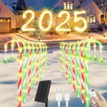 10 Pack Solar Candy Cane Pathway Lights, Outdoor Christmas Decorations with Remote & 8 Lighting Modes 2025