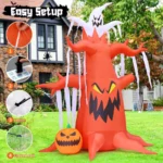 Scary Halloween Inflatables Tree – The Halloween Inflatable tree as if watching you is chilling. A ghost at the top of the tree and a pumpkin decor the roots. The realistic look surprises every trick-or-treater and is sure to be a hit with kids! Built-in bright LED lights in the body. Create a spooky halloween atmosphere that make your home stand out on Halloween.