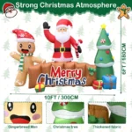 10FT Merry Christmas Inflatable Sign with Santa, Tree & Gingerbread Man, LED Lighted Blow Up Decoration for Outdoor Lawn Winter Decor.