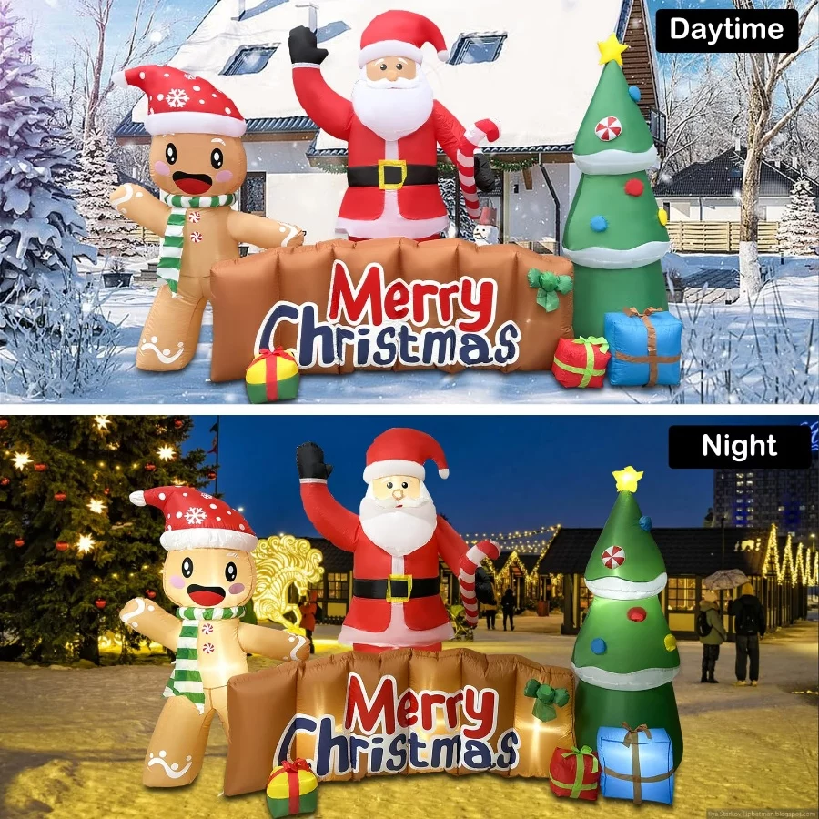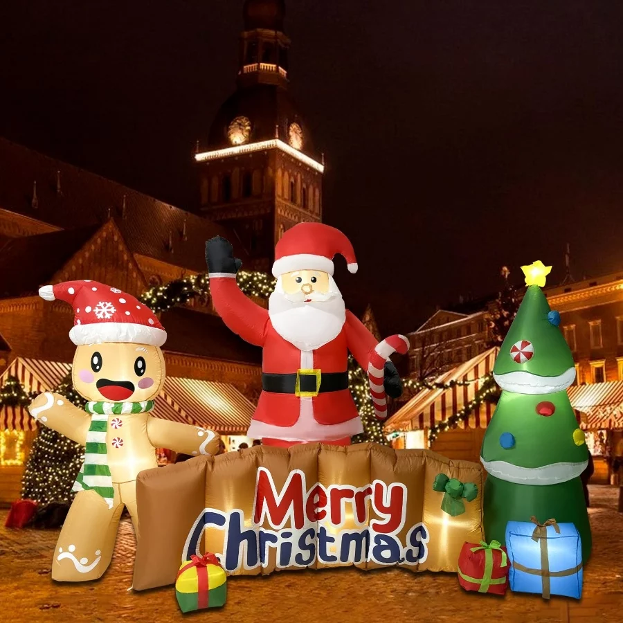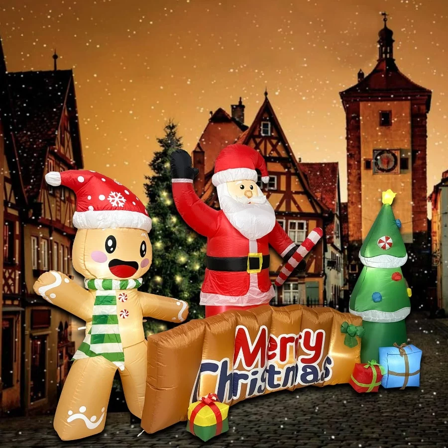 𝐌𝐞𝐫𝐫𝐲 𝐂𝐡𝐫𝐢𝐬𝐭𝐦𝐚𝐬 𝐈𝐧𝐟𝐥𝐚𝐭𝐚𝐛𝐥𝐞𝐬 𝐃𝐞𝐜𝐨𝐫: The playful Santa Claus and gingerbread man wave and greet everyone passing by. They surround a Merry Christmas plaque and there is a beautiful Christmas tree next to it. Welcome your Christmas with the ZXSWONLY 10-foot-long Merry Christmas inflatable decoration. Let our Santa Claus and gingerbread man say Merry Christmas to your neighbors, friends and guests, and let you have a special Christmas!
