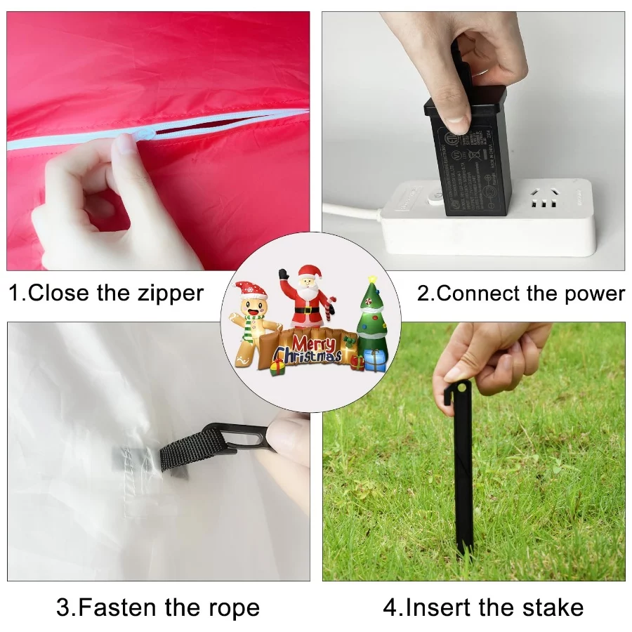 𝐄𝐚𝐬𝐲 𝐭𝐨 𝐈𝐧𝐟𝐥𝐚𝐭𝐞 𝐚𝐧𝐝 𝐃𝐞𝐟𝐥𝐚𝐭𝐞: This Christmas outdoor inflatable decoration is equipped with a powerful and waterproof blower. Just zip up the bottom and plug in the power supply, and in a few minutes, the Christmas outdoor inflatable Santa Claus gingerbread man Christmas tree plaque will come to life and help you greet your guests and friends with their sweet smiles.