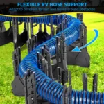 RV Black Water Hose Protection, nesting your RV water hose in the RV sewer support, lift it off ground to avoid damage from scratch or sinking in wet ground while connected to dump station, extending its working life.