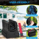 Wider and More Stable, BOYISEN RV waste hose support is designed wider, deep cradles and grooves and come with RV hose secure rubber bands to hold your RV water hose and stand with the black water shock while dumping.