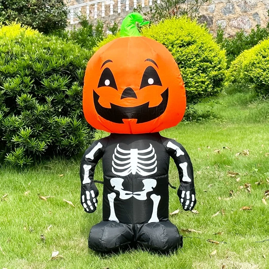 This 4ft spooky Halloween inflatable skeleton with a pumpkin head is the perfect mix of creepy and fun—an instant favorite for our Halloween display! The design is eye-catching and festive, with just the right amount of spooky to delight both kids and adults. The pumpkin head adds a playful, seasonal touch while the skeletal body keeps it in classic Halloween territory.