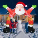 Premium Materials: This Inflatable Christmas Santa Archway outdoor is made of polyester which is waterproof and durable enough, and it’s not easy to be pierced by sharp and hard things.The build-in sandbag at the bottom enhances the stability of this giant decoration. You can have the inflatables up the entire christmas.
