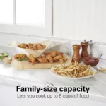 • Family-Size Capacity: This deep fryer holds a 12 cup oil capacity and allows you to fry up to 8 cups of your favorite food in the chrome-plated basket
