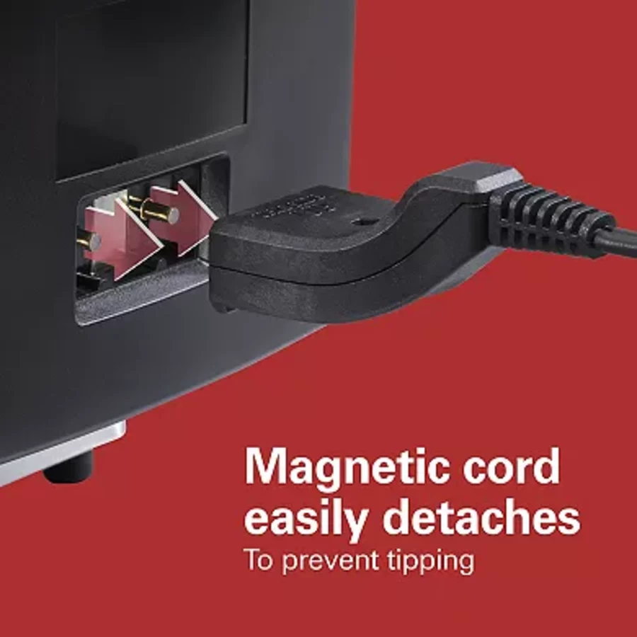 • Safety Cord: The magnetic cord instantly detaches from the fryer if snagged, preventing tipping accidents