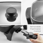 - What’s included: Skillet body; tempered glass lid; and temperature control