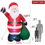 12FT by 7.6FT Giant Santa Claus Inflatable – Lighted Christmas Blow Up Yard Decor with Gift Bag for Outdoor Lawn, Garden & Holiday USA