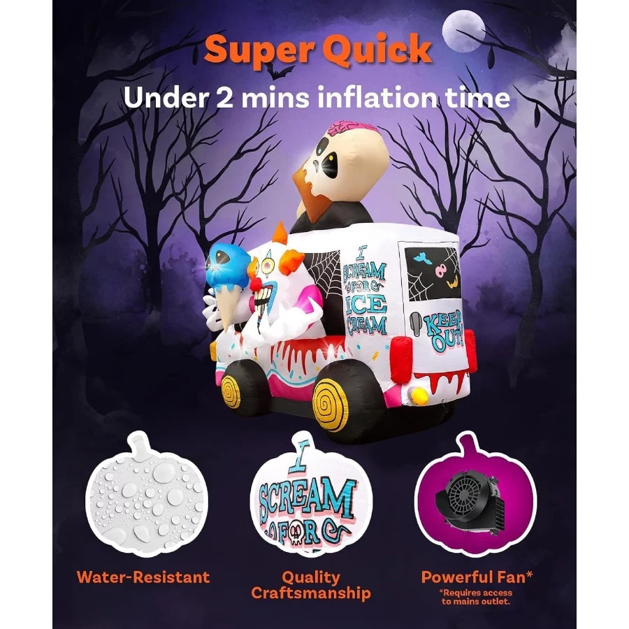 Celebrate in Style: Our Halloween clown ice cream truck inflatables outdoor decoration is waterproof-rated and UL-listed. Perfect for placing home, indoors, outdoors, front door, yard, patio, lawn, garden, porch, and more. Set up your haunted house, graveyard display, pumpkin patch or Halloween party with our large range of inflatable decorations!