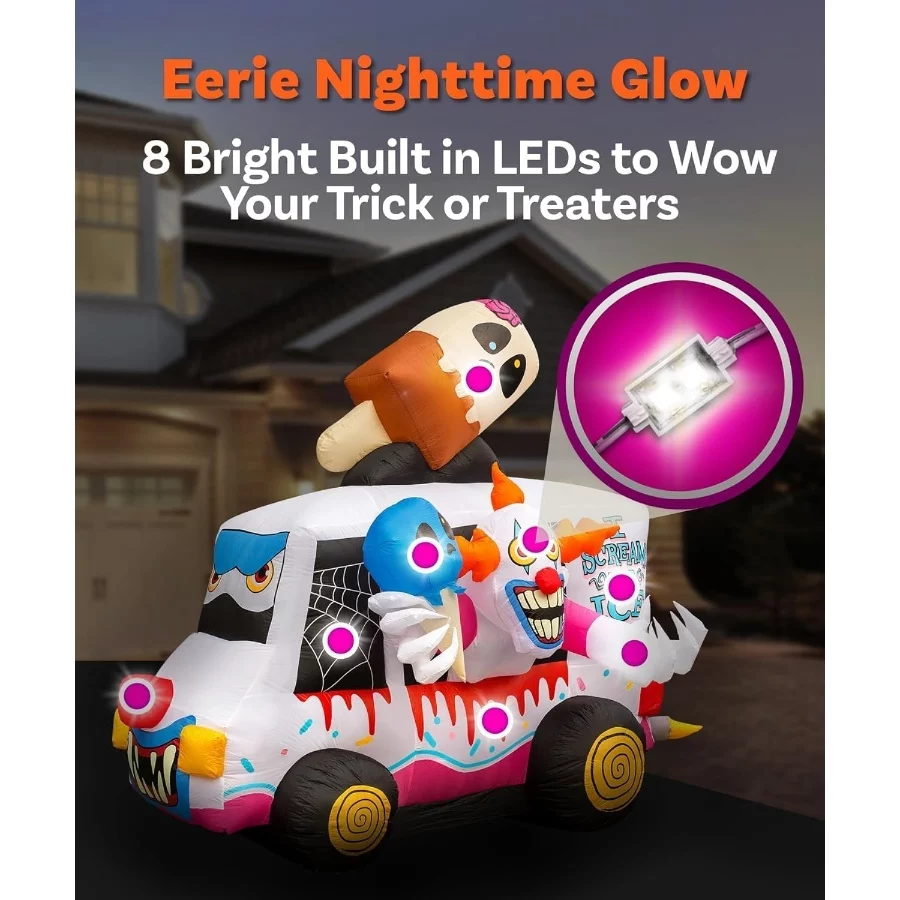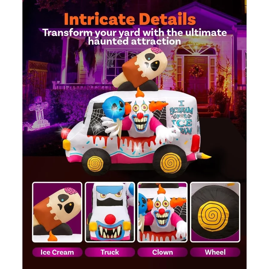 9FT Halloween Inflatable Clown Ice Cream Truck with 8 LED Lights, Scary Blow Up Outdoor Yard Lawn Garden Décor