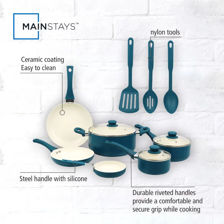 Classic Collection 12 Piece Nonstick Aluminum Alloy Cookware Set, Blue