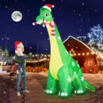 Gift for 13FT Giant Dinosaur Christmas Inflatable with Built-in LED Lights & Santa Hat – Huge Blow Up Yard Decor !!