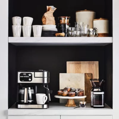 This coffee maker includes a 24 hour programmable timer so you can set your brew in advance and wake up to freshly made coffee. A sixty second memory function helps restore previous settings after a power interruption. The stainless steel and plastic construction offers durability while the glass carafe with a stainless steel handle provides a clear view of your coffee level.