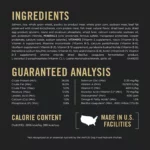 Caloric Content: 3856 kcal/kg, 389 kcal/cup