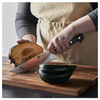 This complete set includes an 8 inch chef knife 8 inch slicing knife 7 inch santoku knife 5.5 inch utility knife 3.5 inch paring knife 2.75 inch birds beak paring knife and six 4.5 inch steak knives. A sharpening steel is included to help maintain a sharp edge along with all purpose kitchen shears and a durable wooden storage block. The collection is a thoughtful option for wedding gifts housewarming gifts graduation gifts or anyone building a well equipped kitchen.