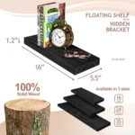 16-Inch Black Floating Shelves – Set of 2 Solid Pine Wood Wall Shelves for Bathroom, Kitchen, Bedroom & Living Room