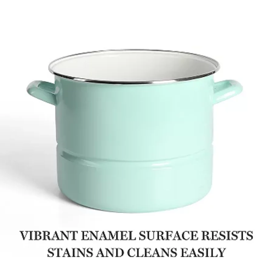 16-Quart Enameled Steel Steamer Stock Pot with Lid – Versatile Large Capacity Cookware for Steaming, Soups, and Boiling – Easy to Clean