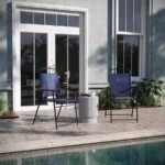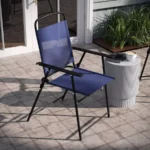 Emma and Oliver Munroe Set of 2 Textilene Folding Sling Style Patio Chairs with Armrests – Lightweight, Durable & Easy to Store