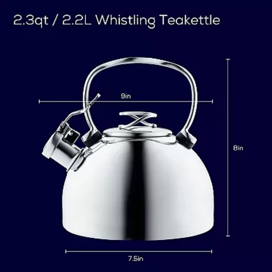 2.3-Quart Whistling Tea Kettle – Durable Stainless Steel Construction & Heat-Resistant Handle – Fast Boiling, Loud Whistle & Stylish Kitchen Design – Induction Compatible