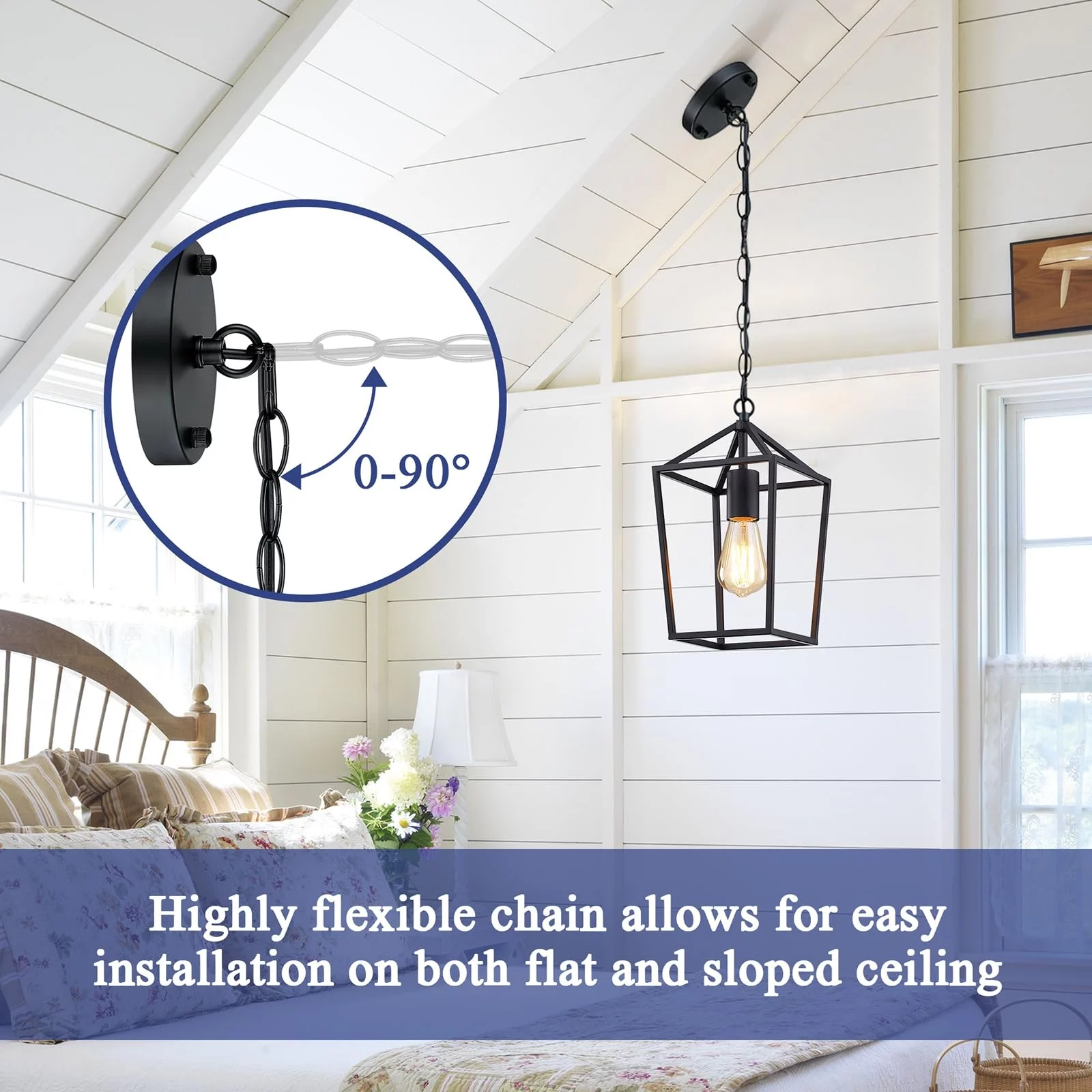 Farmhouse Style: These hanging lights in black finish reinterpret the classic lantern silhouette with a modern twist, seamlessly blending with various home decor styles. They effortlessly create eye-catching focal points in bedrooms, hallways, foyers, front porches, and entryways. Whether hung individually or in multiples, these hanging lamps add a touch of rustic charm and elegance to any space