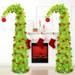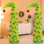 2 Pack 5FT Whimsical Lime Green Pop Up Christmas Tree – Foldable Bendable Design with Red Ornaments for Home Xmas Decorations