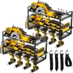 2 Pack Power Tool Organizer Wall Mount Heavy Duty 3 Layer Garage Shelving 8 Drill Holder Storage Rack With 4 Extension Cord Holders