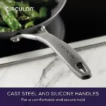 • Cast stainless steel and silicone handles provide a comfortable, secure grip, boosting balance and handling