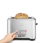 A slide out crumb tray makes cleanup quick and simple. The stainless steel and plastic construction offers a clean modern look that complements any kitchen counter.