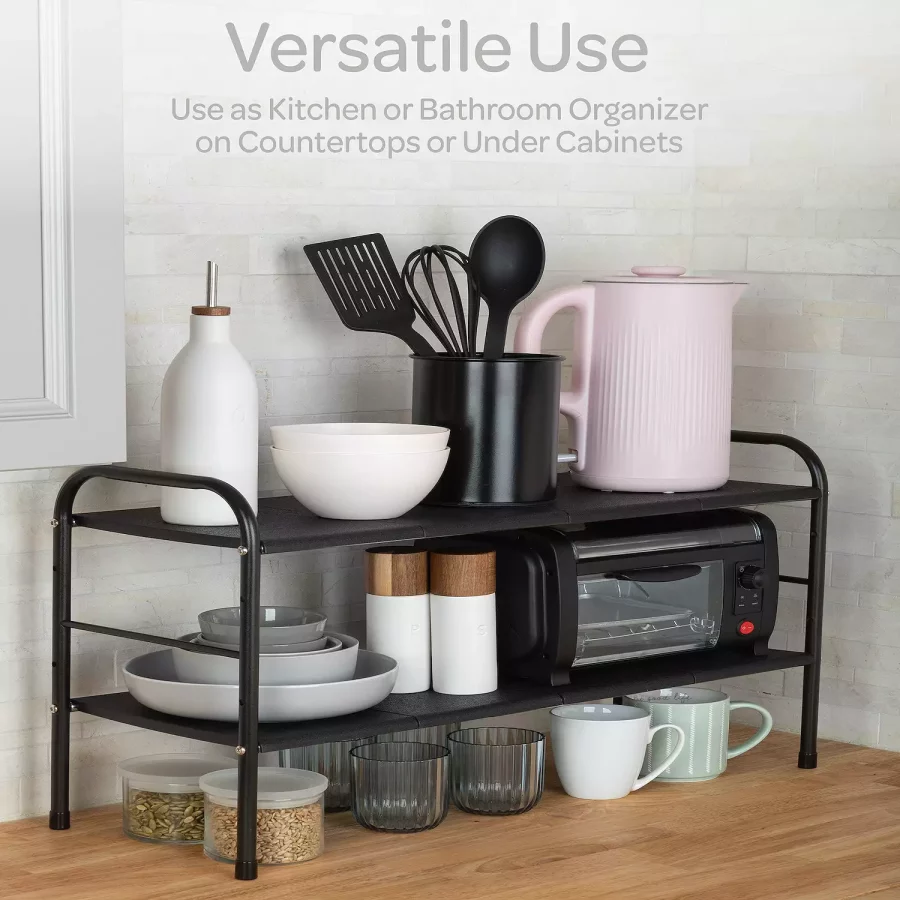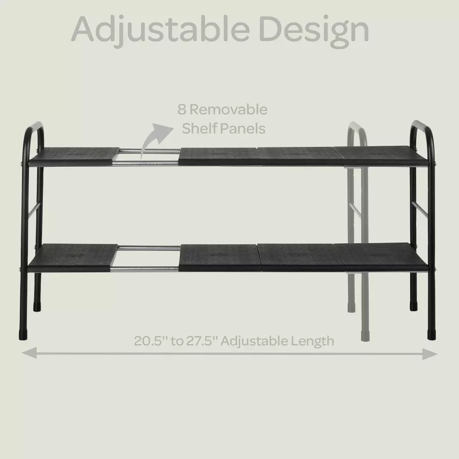 • Adjustable Design: Expandable shelf length from 20.5″ to 27.5″ to fit various spaces and storage needs.