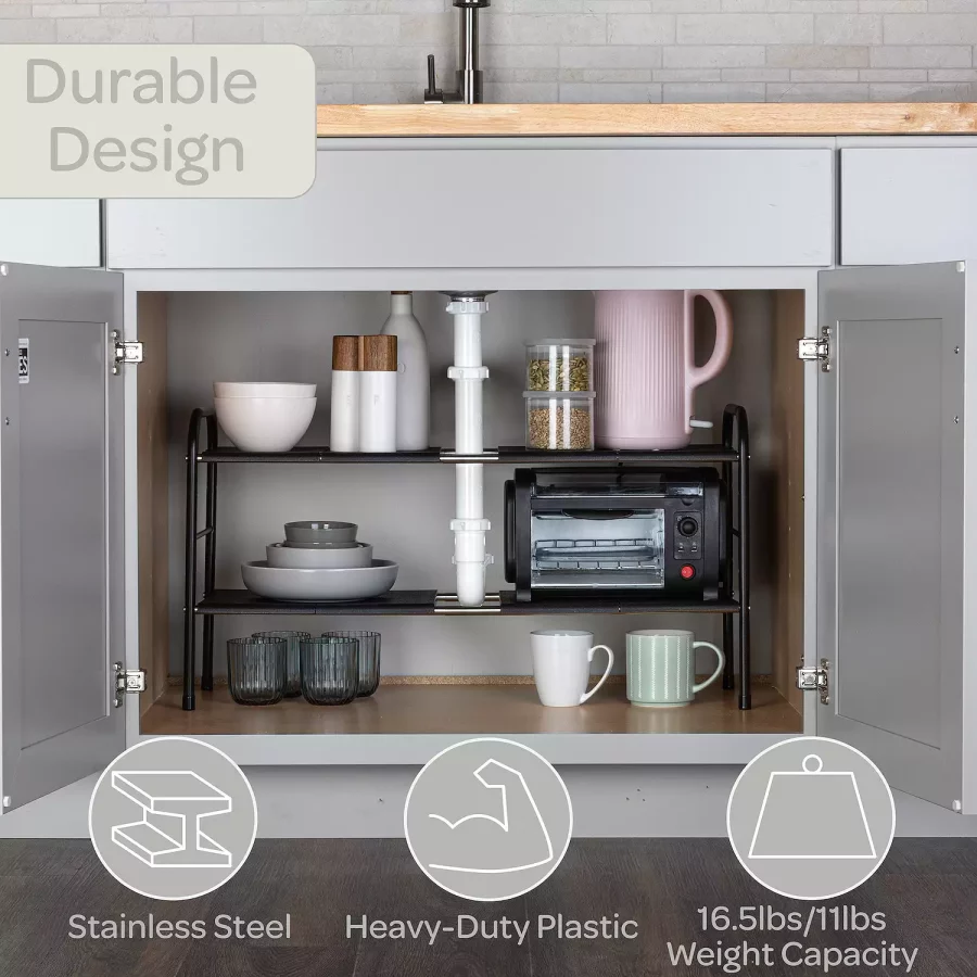 2-Tier Adjustable Under Sink Organizer – Expandable Storage Shelf for Kitchen or Bathroom photo review