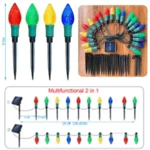 Multifunctional USE: This solar christmas garden stake lights and solar christmas tree lights, allowing you to switch between the two with ease. it can available for different decorative use for christmas tree wedding party window railing or garden patio yard pathway.