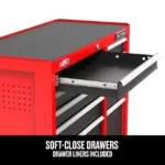 - Heavy-Duty Drawers — Full-extension slides hold up to 100 lbs per drawer for easy, reliable access to tools