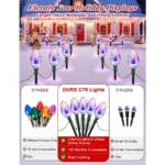 Generous Set with Expandable Coverage: This set includes 2 connected strands totaling 16 feet, each with 5 large C70 snow globe bulbs—10 dazzling lights in all. Designed for easy expansion, you can connect up to 120 sets end-to-end, creating a breathtaking 1,920-foot luminous pathway perfect for large-scale holiday displays in gardens, parks, commercial spaces.