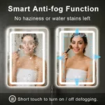 ANTI-FOG & IP54 WATERPROOF: this vanity mirror with lights has an expanded anti-fog pad on the back, that heats up to keep mirror fogless and clarity. One touch to defog helps make a perfect vanity mirror for makeup or shaving. IP54 waterproof ensures safe and durable lighting experience in humid bathroom environment.