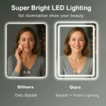 BEAUTIFUL MIRROR FOR ANY ROOM: our modern smart digital light up bathroom mirror has built-in LED strips, which can provide you super bright Backlit lighting for makeup, skin care, dressing up or shaving. Except for bathroom it is also a good choice to place this LED lighted mirrors in bedroom, living room, dressing room or salon space barber shop. Enjoy the atmosphere of a hotel bathroom