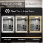 3 COLOR TEMPERATURE & DIMMABLE BRIGHTNESS: brightness of our LED lighting bathroom mirror can be adjusted easily by long-pressing on touch sensor button. Besides, simply short-pressing on touch button to switch 3 kinds of color temperature modes: Warm Lighting (3000K); Natural Lighting (4000K); White Lighting (6000K).