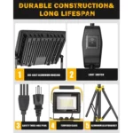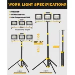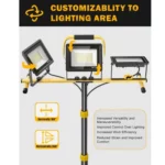 Super Bright LED Light Source : 21000LM super bright Tripod LED Work Light with 6500K Color Temperature. It provides bright, pure white, easily focused light on your requirements in Whether for construction lights, garage lights, or outdoor work light needswith minimal energy consumption.