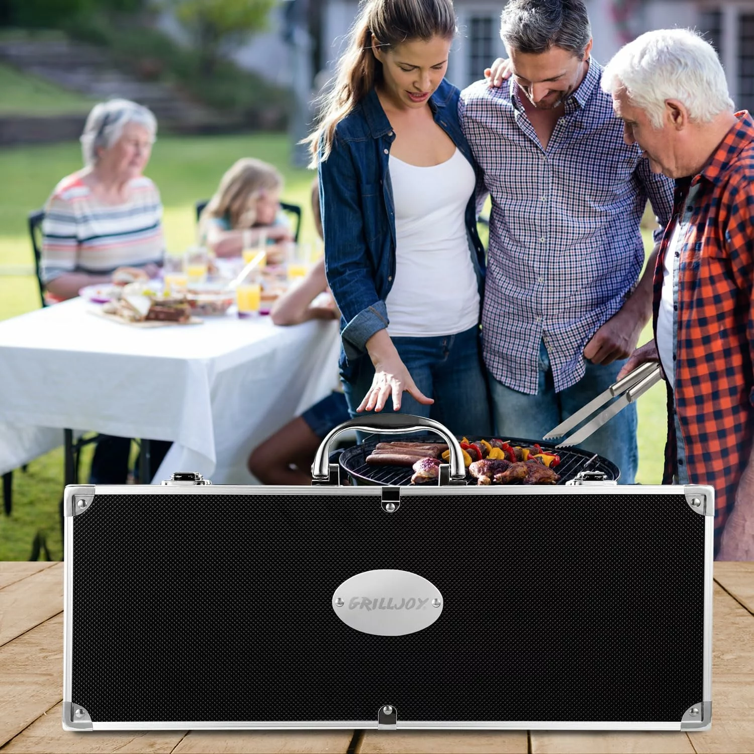 22Pcs Stainless Steel Barbecue Grill Accessories With Black Aluminum Case Outdoor Grill Tools Kit Grilling Gifts For Men Dad