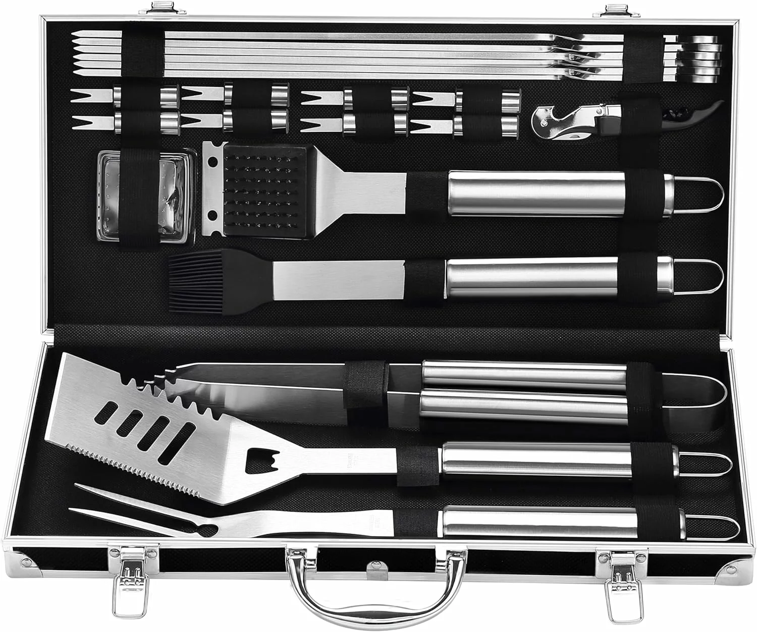 22 PCS Stainless Steel Barbecue Grill Accessories for Outdoor Grill with Black Aluminum Case – Grilling Gifts for Men Dad -Grill Tools Kit