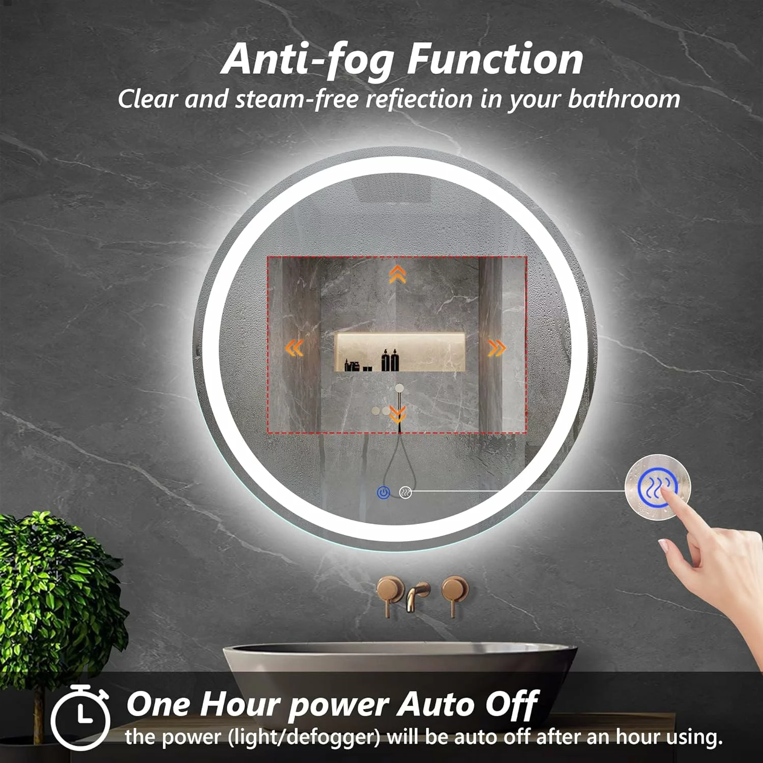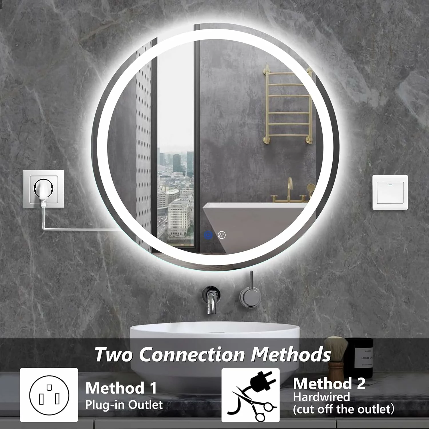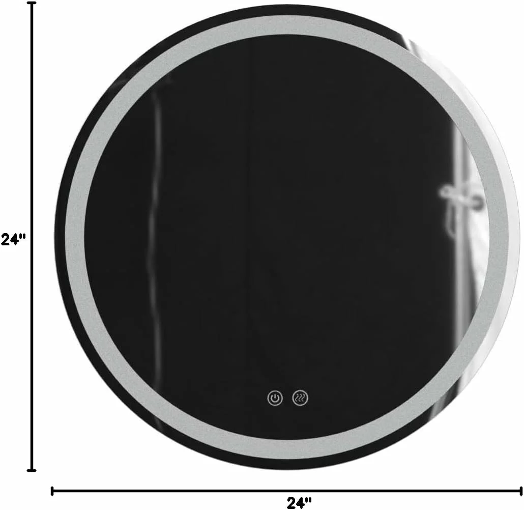 24 Inch LED Round Lighted Bathroom Mirror, Wall Mounted Vanity Mirror with Anti-Fog, Dimmable 3 Color