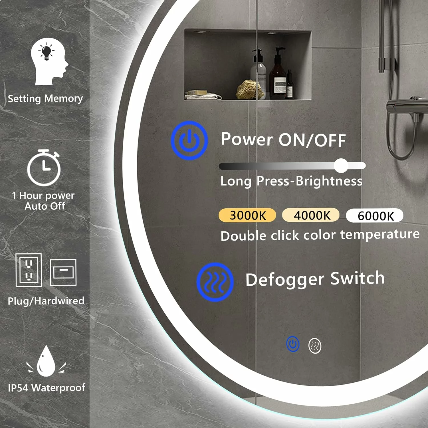 Anti-fog and Waterproof The wall makeup mirror have an anti-fog function, tap the switch to automatically enter the anti-fog state to keep a clear reflection image even after you take shower. The electrical part is built in the IP44 waterproof box to ensure using safety
