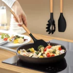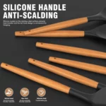 ONE-PIECE MOLDING, NON-DEFORMABLE, EASY TO CLEAN: We’ve designed these silicone kitchen utensils sets with stainless steel cores wrapped in silicone for shape retention and flexibility. No warping or cracking, no hassle. The silicone utensils for coking one- piece construction ensures no pesky gaps where food can hide, making cleaning a breeze. Due to the unique nature of wooden handles, we recommend handwashing