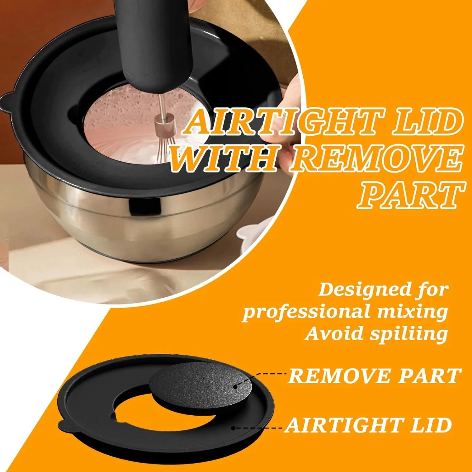 26PCS Mixing Bowls Set, Stainless Steel with Airtight Lids, Non-Slip Bottoms, 3 Grater Attachments & Kitchen Tools Black