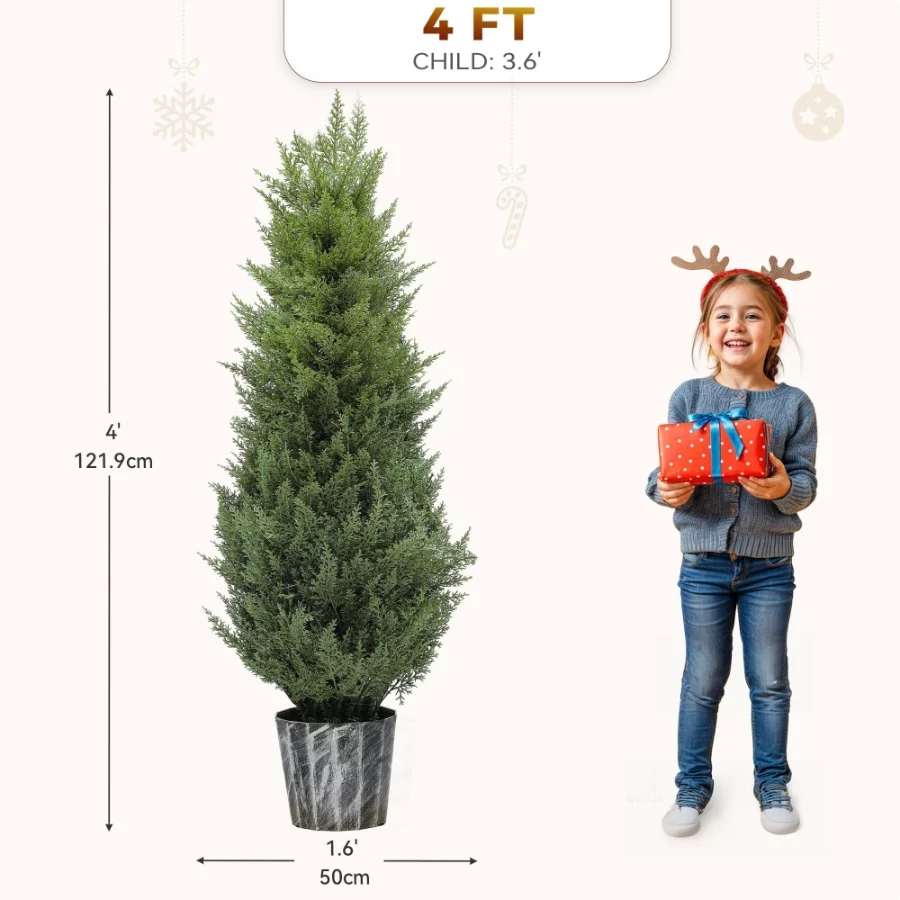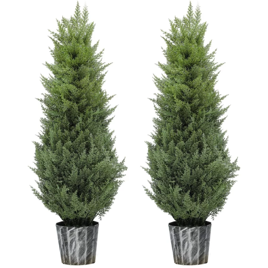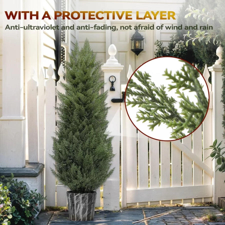 Effortless Upkeep – Enjoy the beauty without the burden. These artificial cypress trees require no watering, soil, or fertilizers. Resistant to weather conditions, they stay vibrant and fresh-looking with just a simple wipe down.
